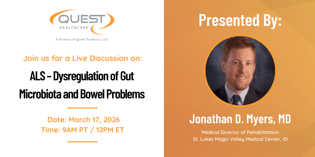 Gastrointestinal and bowel complications associated with ALS are often underrecognized in routine care. Healthcare professionals are invited to join Quest Healthcare and Dr. Jonathan D. Myers, MD for an expert-led clinical webinar. The content is designed to support interdisciplinary clinical decision-making and improve patient-centered outcomes.